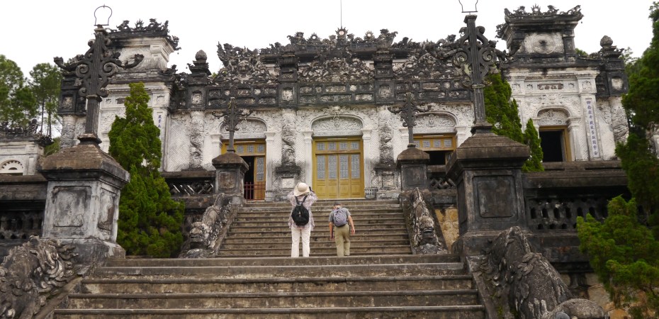 This is the tomb of the second last king of the Nguyen dynasty. He is very close to France so he imported many things from France which you can also see when you visit.